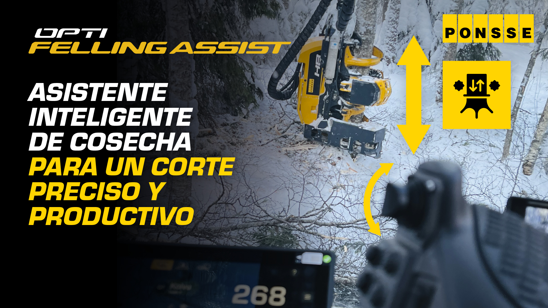 “OptiFellingAssist facilita y agiliza el trabajo del operador, a la vez que mejora la calidad del trabajo. Ayuda a realizar cosechas exitosas en cualquier situación. El resultado es una mayor seguridad, menor desgaste de la espada y la cadena, un brazo más duradero y mayor productividad con menos estrés. OptiFellingAssist ayuda al operador con la pretensión para el corte, lo que evita que la espada se atasque y permite un derribo más seguro del árbol”, describe Timo Koskiahde, Product Manager, Information Systems, Ponsse Plc.